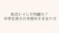中学生男子が和式トイレで肉離れ。MRIで診断され、2週間で復帰したものの再発し、最終的に約1か月半で復帰した実体験です。原因・症状・注意点を母目線でまとめました。成長期特有のリスクや再発を防ぐポイントも解説します。初期対応の重要性も具体的に紹介しています